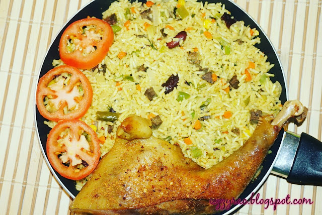 What is Christmas in a Nigerian household, without the smell of freshly made fried rice? This used to be an essential in our house as we don't get to cook this meal often. Getting hold of the already chopped vegetables is something else in Nigeria, as one would have to go to big supermarket for them. And when seen, the price in relation to quantity isn't something to write home about lolzz. I usually get my fresh vegetables from the market as I would be cooking for a large quantity of people back home and as a typical Nigerian lady, I found this more economical. With a full house then, there was usually no fuss about chopping up the numerous amount of vegetables as an excuse not to participate in the chopping up process simply means no meal........And trust, who wants to be denied Christmas fried rice?(winks).